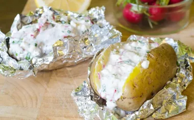 Obok połóż porcję gziku lub posmaruj nim ziemniaki.