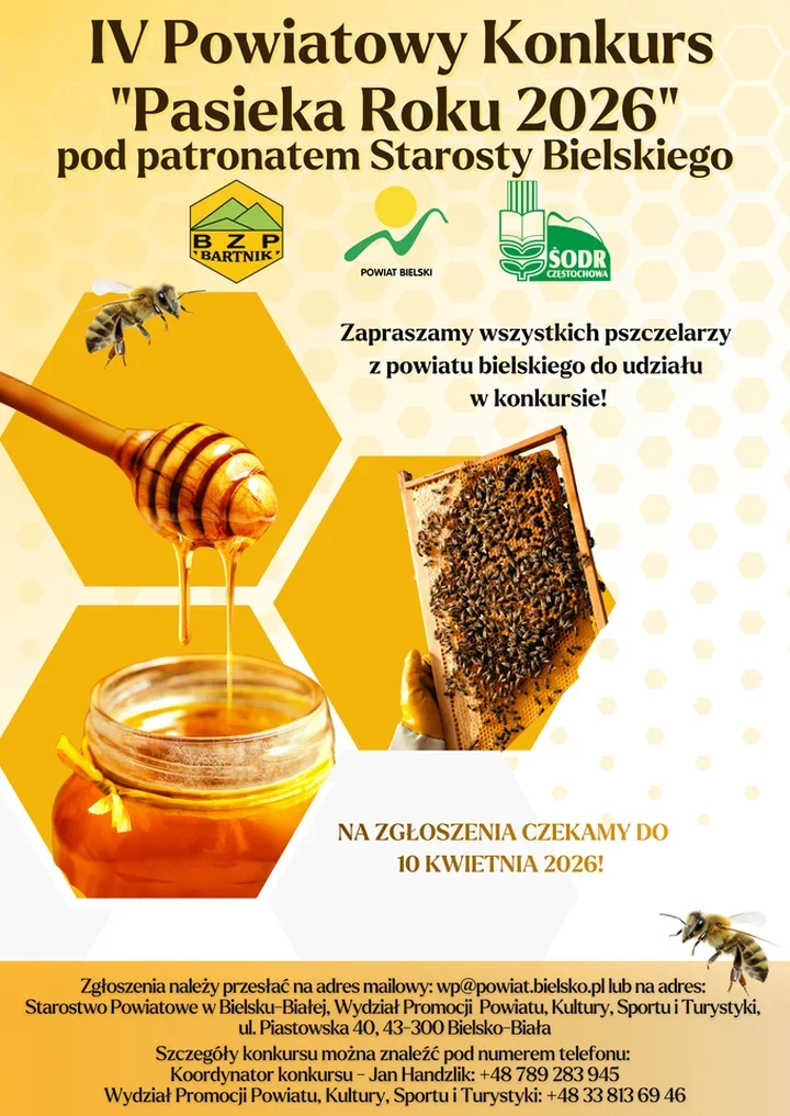 Starostwo Powiatowe w Bielsku-Białej, Beskidzki Związek Pszczelarzy „BARTNIK” oraz Śląski Ośrodek Doradztwa Rolniczego w Częstochowie , Oddział Bielsko-Biała, zapraszają pszczelarzy z powiatu bielskiego do udziału w czwartej odsłonie konkursu pod patronatem Starosty Bielskiego. To przedsięwzięcie ma wyraźnie szerszy sens niż sama rywalizacja o tytuł.