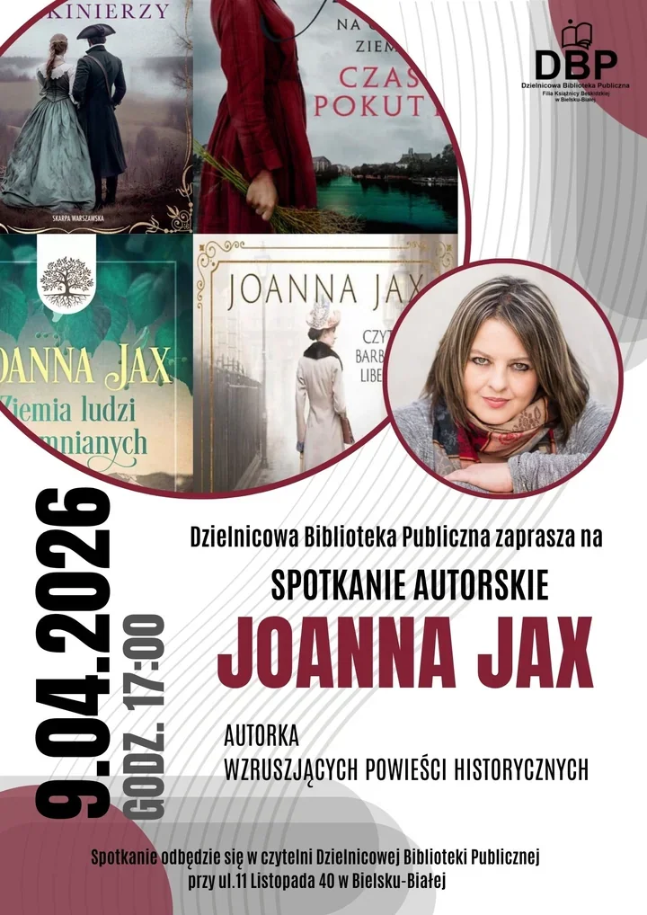 Joanna Jax od lat buduje swoją pozycję dzięki opowieściom, w których ważne są zarówno bohaterowie, jak i tło historyczne. Właśnie dlatego takie spotkanie może zainteresować nie tylko wiernych czytelników, ale też osoby szukające inspiracji na kolejną książkową lekturę. W Książnicy Beskidzkiej zapowiada się więc spokojny, literacki wieczór z wyraźnym miejskim akcentem - idealny na wiosenny spacer zakończony rozmową o książkach.