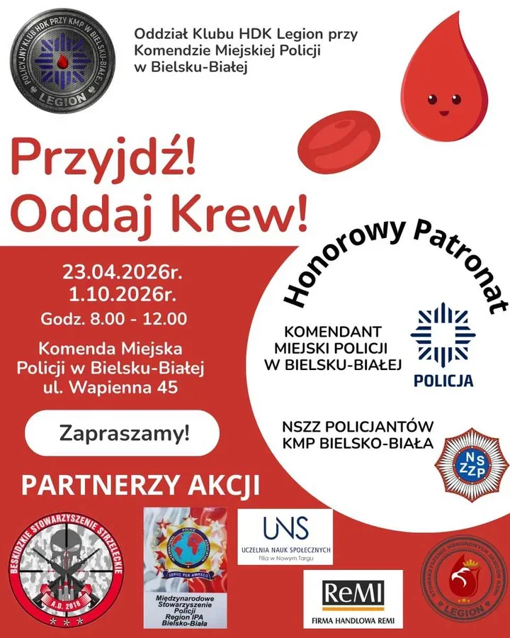 Akcję przygotował Klub Honorowych Dawców Krwi „Legion” działający przy Komendzie Miejskiej Policji w Bielsku-Białej wspólnie z NSZZ Policjantów Komendy Miejskiej Policji w Bielsku-Białej. Honorowy patronat nad wydarzeniem objął Komendant Miejski Policji w Bielsku-Białej.