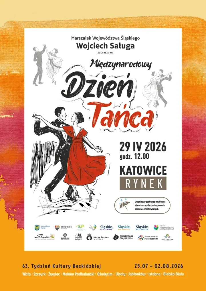 Na katowickim rynku taniec wyjdzie z sal i scen prosto między ludzi. 29 kwietnia 2026 r. o godz. 12:00 centrum miasta zamieni się w wspólną przestrzeń ruchu, muzyki i spotkania - od poloneza po góralskie rytmy. 🎶💃