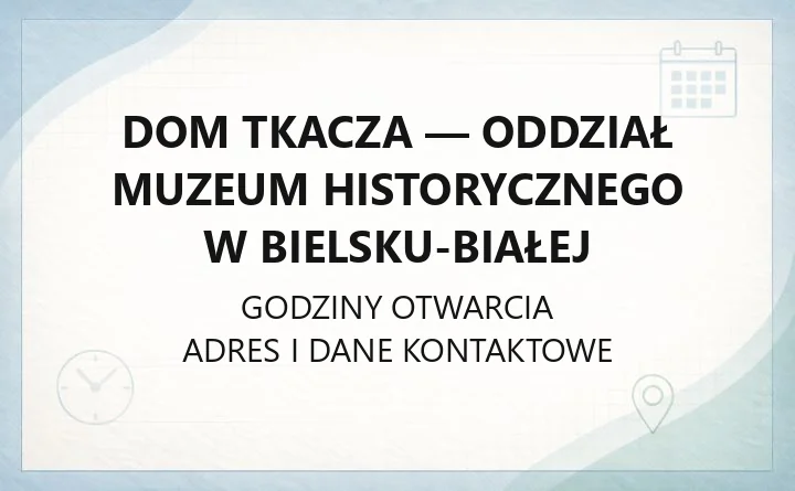 Dom Tkacza to zabytkowy dom z tradycjami tkackimi, udostępniony jako ekspozycja zewnętrzna Muzeum Historycznego w Bielsku‑Białej. Pokazuje dawne mieszkanie i warsztat sukiennika oraz opowiada o lokalnych tradycjach włókienniczych. Poniżej najważniejsze, praktyczne informacje przed wizytą.