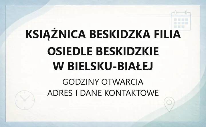 Godziny otwarcia filii: aktualne godziny otwarcia filii sprawdź na oficjalnej stronie Książnicy Beskidzkiej.