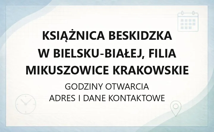 Materiał źródłowy stanowiła strona ksiaznica.bielsko.pl. Dane mogą się zmieniać; pamiętaj, warto sprawdzić je na oficjalnej stronie.